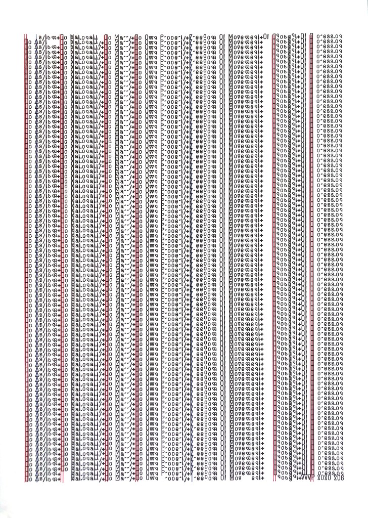 Walter van Rijn BeingAndroid_text1 series;(2020); ink on paper; 300x420mm; hybrid human/robotic drawing on acid-free paper.